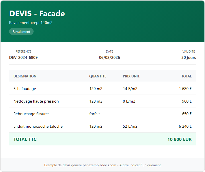 Exemple Devis Façade : Modèles, Prix et Simulateur