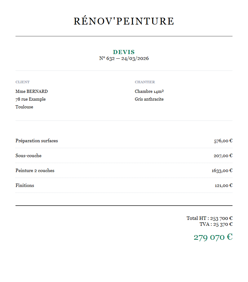 Générateur de devis peinture gratuit