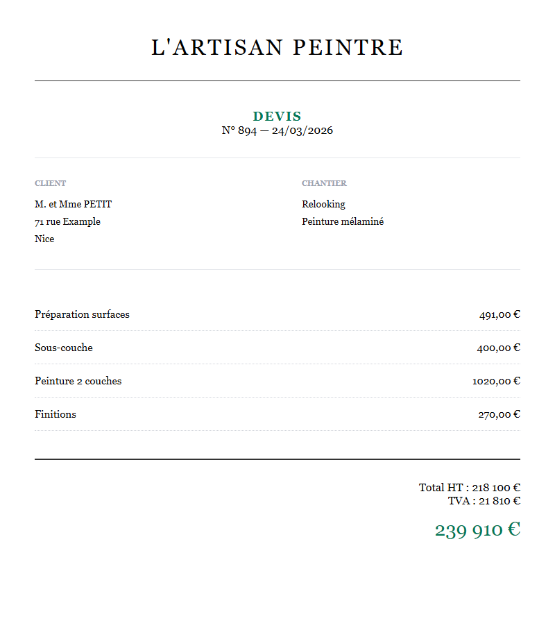 Générateur de devis peinture gratuit