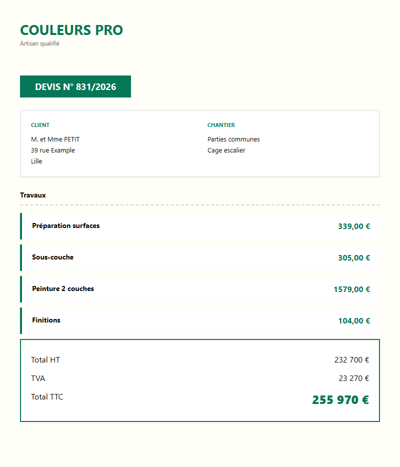Tarifs peintre en bâtiment professionnel, devis type et guide complet.
