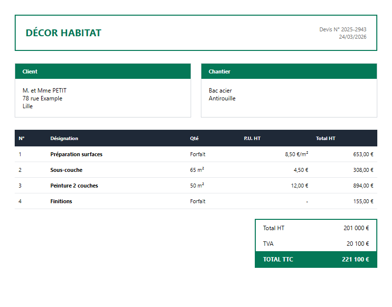 Générateur de devis peinture gratuit