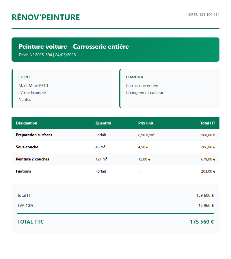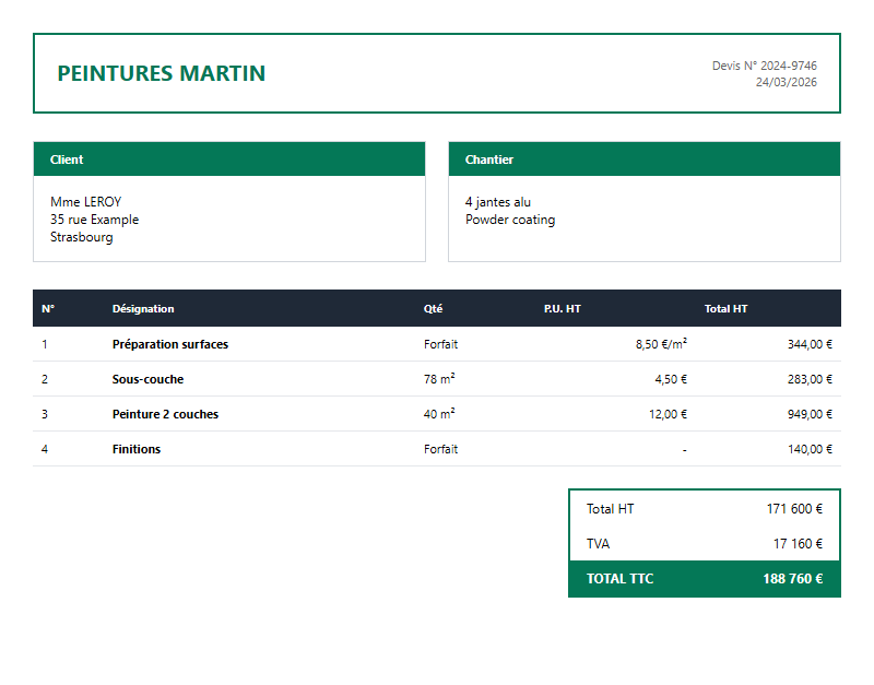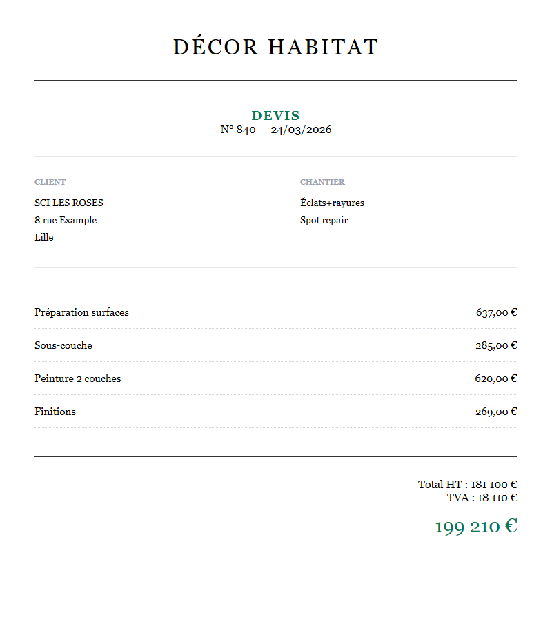 Générateur de devis peinture gratuit