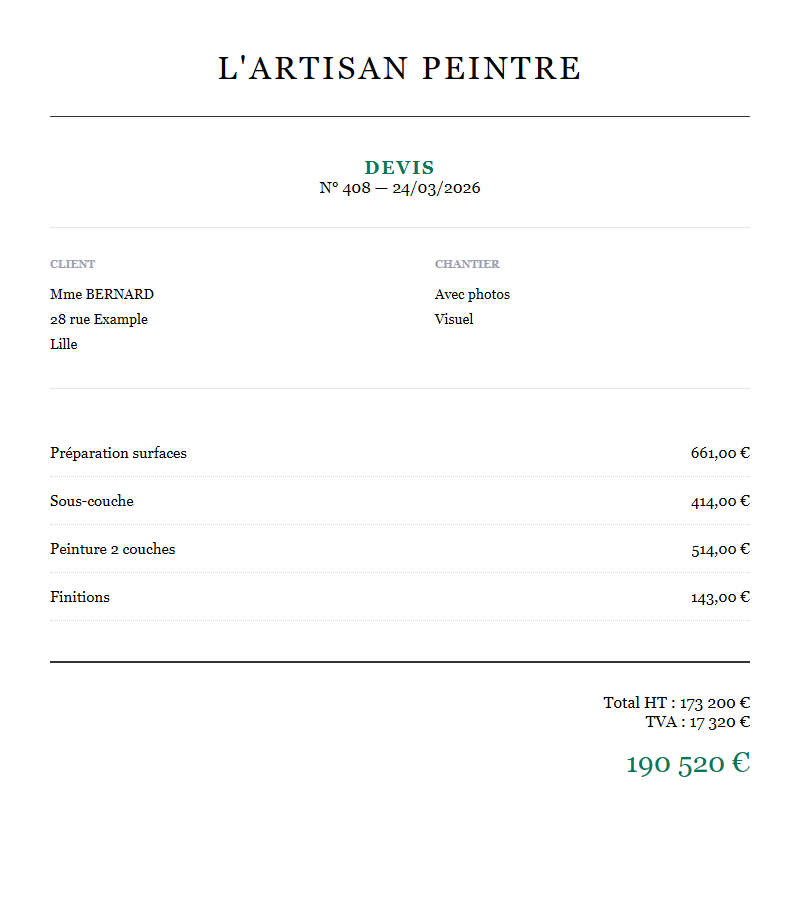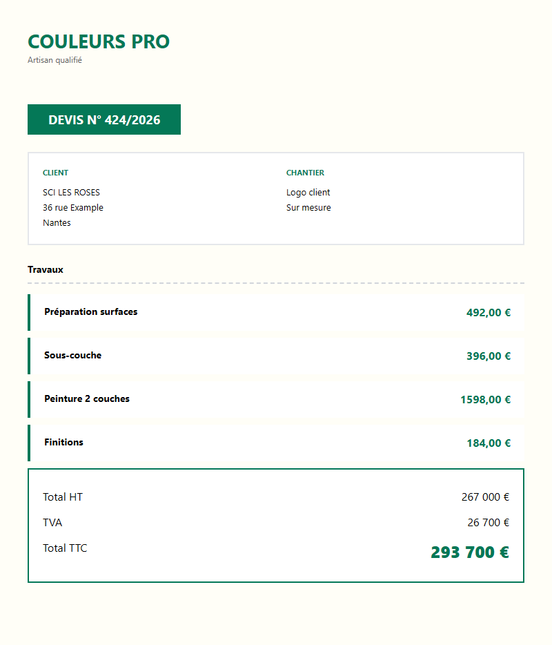 Modèle Word de devis peinture, prêt à remplir et personnaliser.