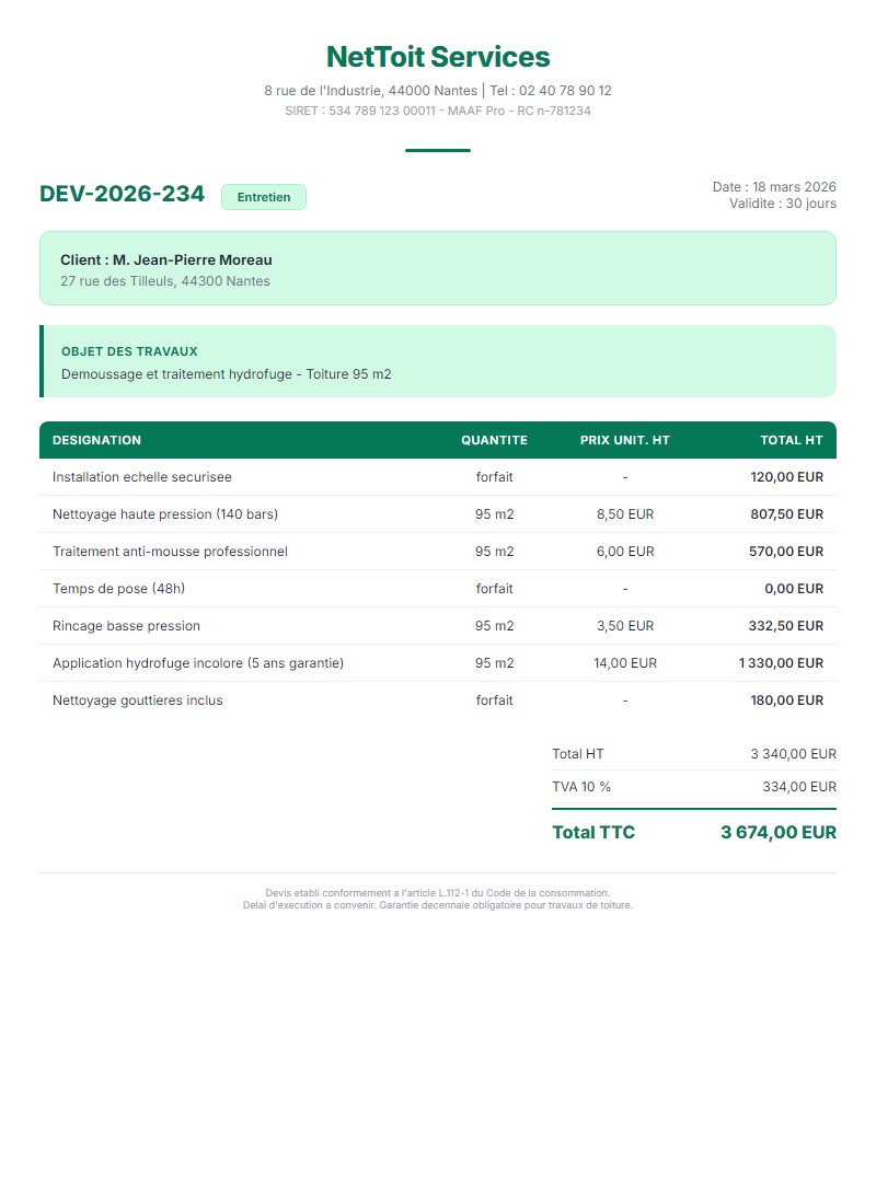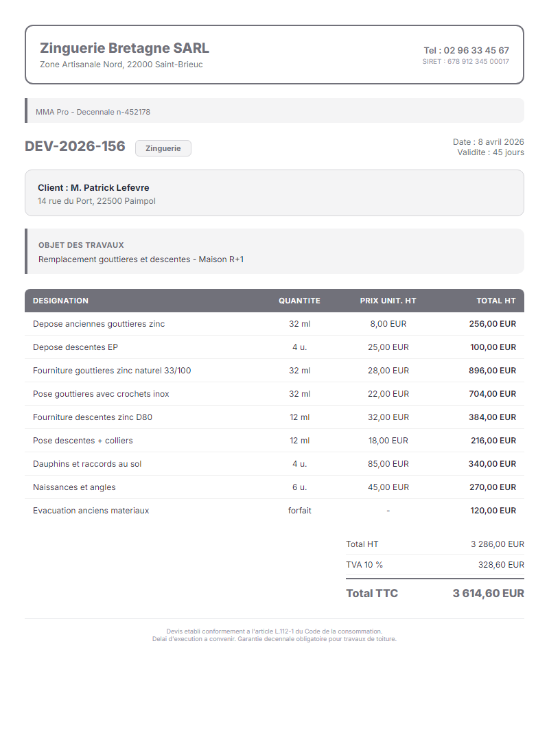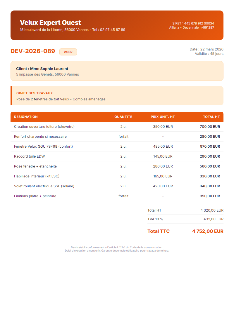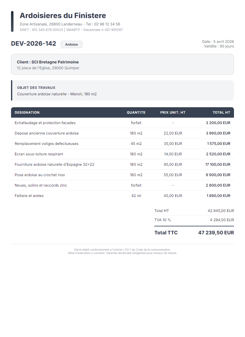 Decouvrez des exemples de devis toiture detailles, simulez votre budget en ligne et telechargez nos modeles gratuits au format PDF.
